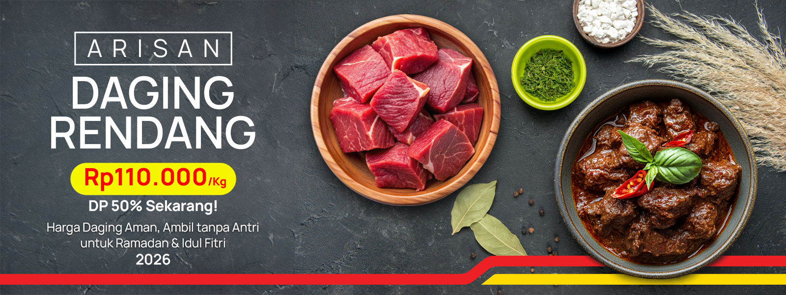Dengan sistem Arisan, pelanggan berkesempatan untuk mengamankan stok daging rendang sejak awal, sehingga tidak perlu khawatir kehabisan atau menghadapi antrian panjang menjelang hari-hari sibuk Ramadhan. Seluruh pesanan akan diproses dengan sistem yang terjadwal, memastikan Anda menerima daging dalam kondisi segar, higienis, dan siap diolah.